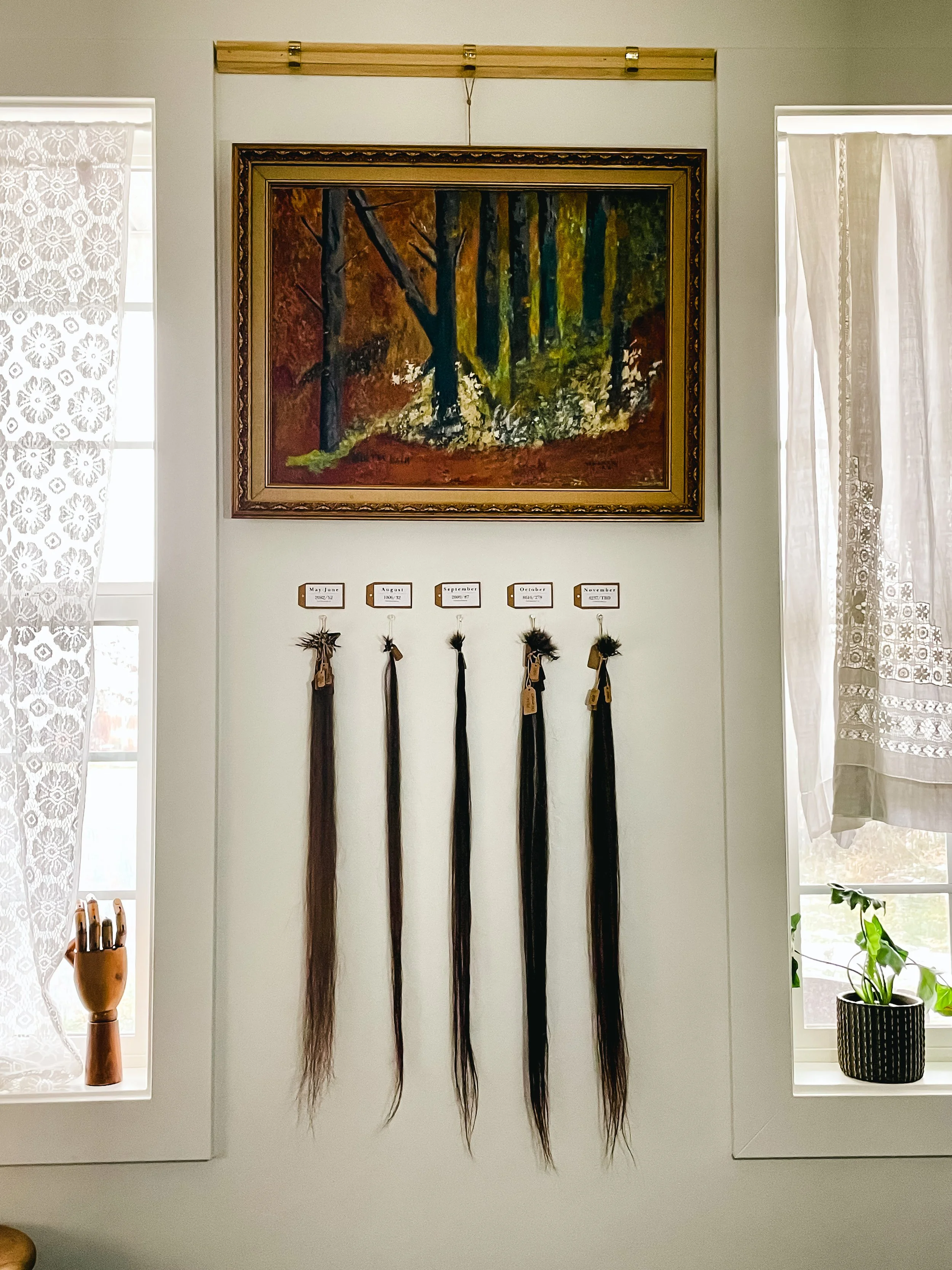 This is an ongoing collection, diary, data, ritual, observation, journal, and examination through the natural shedding of my hair, a sustainable material.